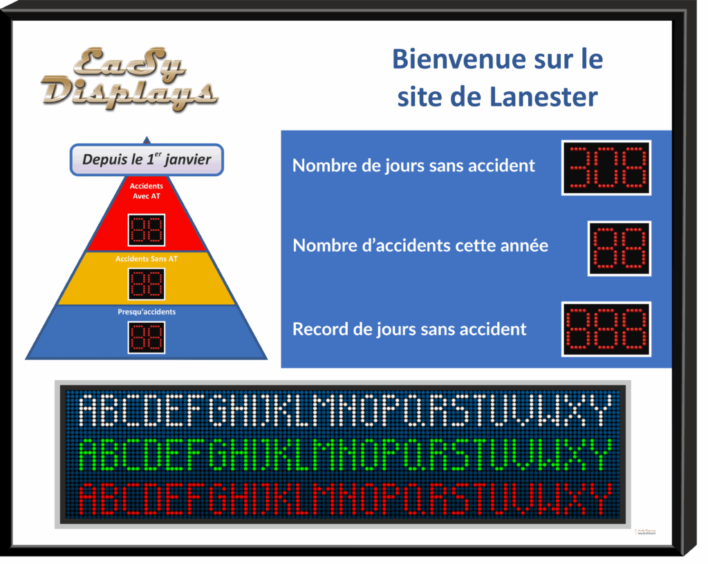 Il combine trois éléments principaux : panneaux HSE, messages de type Digital Signage et statistiques d’accidents personnalisées.
